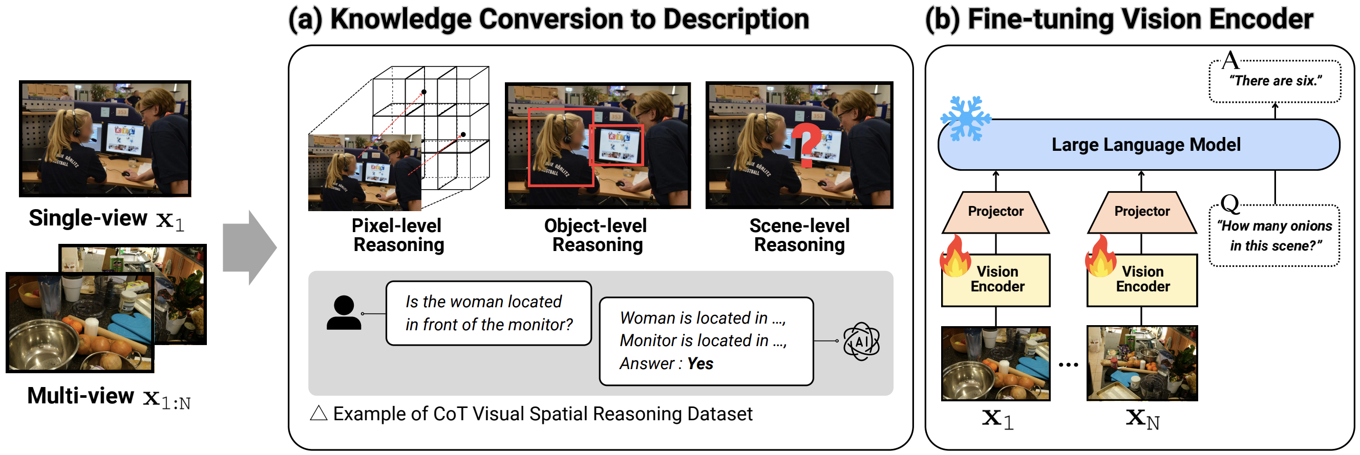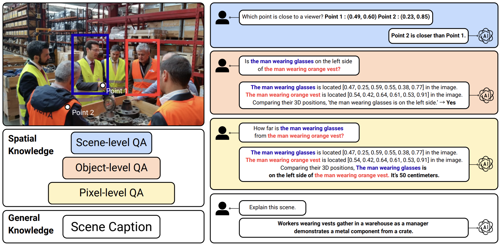 Construct hierarchical reasoning data with spatial knowledge from pixel-level to scene-level.